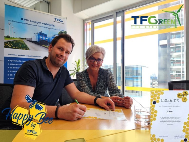 Mit einer Bienenpatenschaft setzt sich der Logistikdienstleister TFG Transfracht im Rahmen ihres Umweltmanagements gegen das Bienensterben und damit aktiv für den Natur- und Artenschutz ein. Zur Unterstützung übernimmt TFG seit 2019, eine Patenschaft für ein eigenes Bienenvolk, welches auf den Namen „Happy Bees by TFG“ getauft wurde. Wohnhaft ist das TFG-Volk in der Lüneburger Heide, bei dem Imker Benjamin Möller, der Mitglied im Deutschen Imkerbund ist und als Verfechter naturnaher Bienenhaltung die Pflege der TFG-Bienen mit großer Sorgfalt und Fachwissen übernimmt.